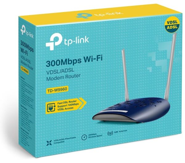 مودم TD-W9960 دارای دو آنتن با قدرت گیرندگی 5 دسیبل است که میتواند محیط وسیعی را تحت پوشش شبکهی بیسیم قرار داد. مودم تی پی لینک مدل TD-W9960 از باند فرکانسی 2.4 گیگاهرتز بهره میبرد.